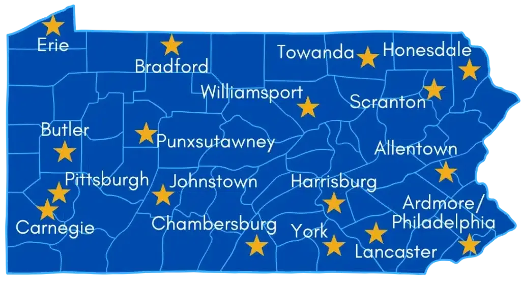 We proudly serve property owners across Pennsylvania, from major metro areas like Philadelphia and Pittsburgh to smaller towns across the state.